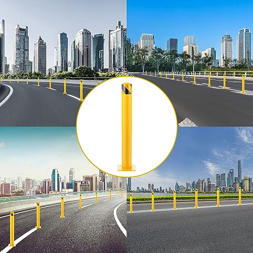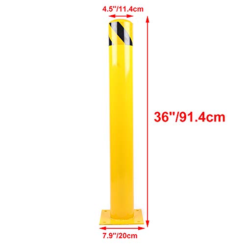 36” x 4.5 ” Safety Bollard Post Reflective Yellow Pipe Bollards Steel Parking Barrier Nocturnal Lifting Ground Barrier With 4 Free Anchor Bolts, Heavy Duty Powder Coated Safety Parking Barrier Post 11Ga(3MM) Base-8×8”