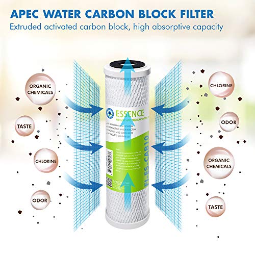 FILTER-SET-ES APEC Water essence standard capacity pre-filter set (FILTER-SET-ES) includes (1) sediment and (2) carbon block filters to protect and extend the life of the ro system 1st stage 5 micron polypropylene sediment filter to remove dust, particles, and rust 2nd & 3rd stage 10 micron extruded carbon block filters to remove chlorine, taste & odor high performance Replacement filters are compatible with all standard sized under counter ro systems.