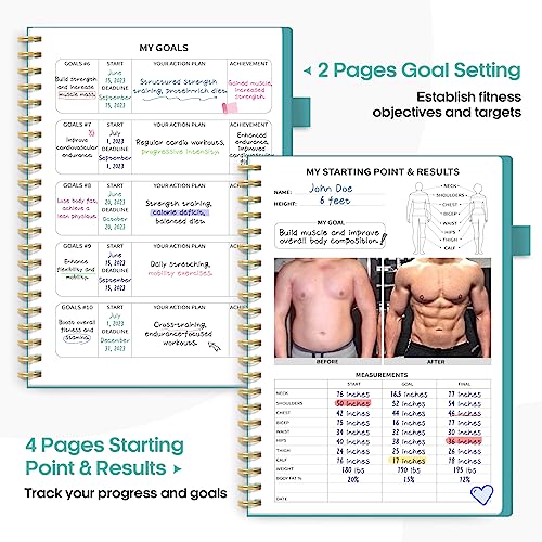 • Set and Achieve Goals – Set up to 10 fitness goals and track your progress towards them. This workout log provides space to note your goals and track your performance, enabling you to stay motivated and focused on your fitness journey.