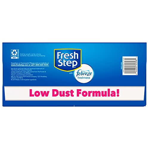 Details: Fresh Step Advanced Extreme clumping cat litter destroys extreme odors with the power of Febreze. It gets rid of the strongest litter box odors with a tough odor eliminating formula and leaves behind a fresh Mountain Spring scent. Fresh Step Advanced Extreme also uses Fresh Step Clumplock Technology, which locks in liquid and odor and creates tight clumps for easy scooping, and prevents stinky crumbles from being left behind. And, it is 99.9% dust free for cleaner surfaces, cleaner air and reduced tracking. Cleaning is fast and easy—just add more litter to your cat’s litter box after you scoop.