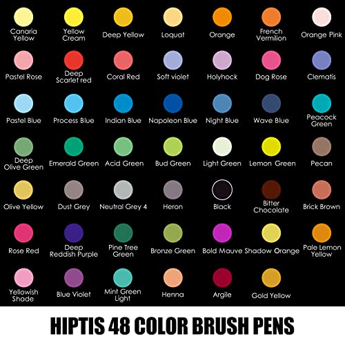- HIGH QUALITY:HIPTIS watercolor brush pens is amazing quality for the money. 48 colors painting pens with a water brush. Art supplies for beginners and professional.