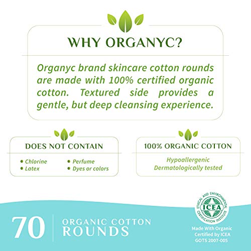 Organyc 100% Organic Cotton Rounds – Biodegradable Cotton, Chemical Free, For Sensitive Skin (70 Count) – Daily Cosmetics. Beauty and Personal Care